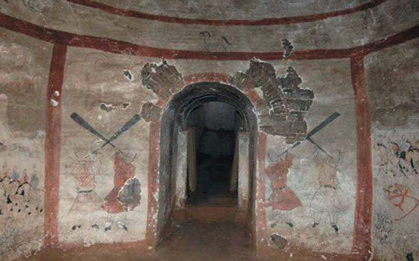 在中国出土的1,400年古墓,带有“蓝色怪物”的壁画