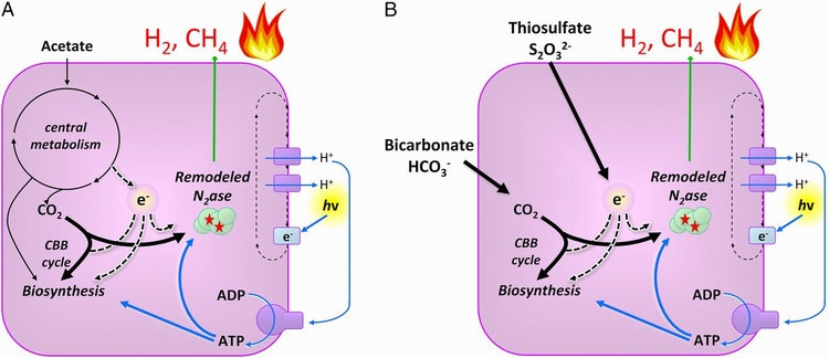 如同科学人杂志解释这个过程,这个R. palustris细菌,也被修改来增加设计过的固氮酶的生产程度。就如同在自然的化学反应里,酶需要阳光来注入燃料,以产生完成化学反应所需的能量。这些结果是相当有希望的。还有,从二氧化碳到甲烷的过程,很接近氮气到氨气自然过程的效率。Harwood说:“一般的酶,对每一个氨气(分子)做出大约两个氢原子。改变后的酶,对每一个甲烷分子做出一千个氢原子。”