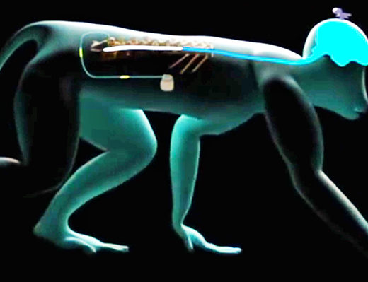 有重大脊椎伤害的瘫痪猕猴能够在遭受到导致残废的伤害后不到六天再度行走,这要归功于一个被称为脑脊椎界面(brain-spine interface)的新系统。使用策略性放置电子植入物,这项新技术绕过脊椎的受伤区域,让信号在大脑和腿之间行进。