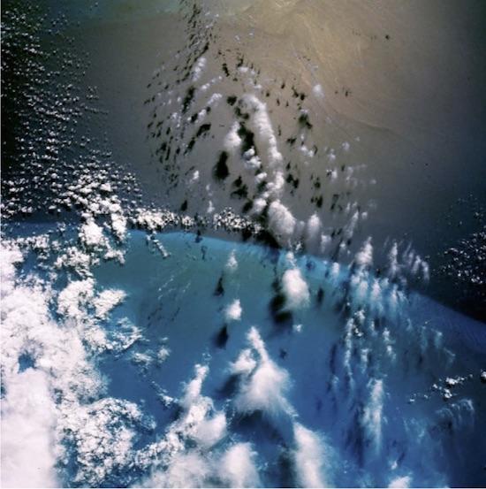 在Ed White进行了美国历史性的第一次太空行走之后,1965年6月,搭乘双子座四号飞船的宇航员Jim McDivitt和Ed White在飞越佛罗里达海峡上空时,用一台哈苏相机和70毫米镜头拍下了上面这张照片。(图片来源:NASA)