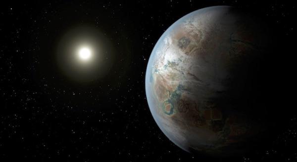 2015年,美国宇航局开普勒飞船释放了最新一批系外行星的观测数据。上图展示的是岩体行星Kepler-452b。科学家认为,它的个头比地球大很多,正在围绕一颗类似太阳、但却比后者年老很多的恒星公转着。(图片来源:NASA/JPL-CALTECH/T. PYLE)