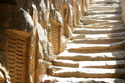 埃勒芬蒂尼岛上的尼罗河测量仪。台阶一直通往尼罗河,墙上的短横线标示着先前出现过的最高水位。