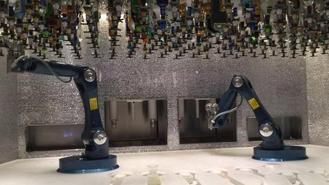 酒吧侍者:皇家加勒比豪华邮轮现已安装一个机器人酒吧——Shakr Makr,该机器人系统是美国麻省理工学院成功研制的。消费者可以通过平板电脑下定单,而且并不仅限于套餐服务,还可以提供个性化鸡尾酒。