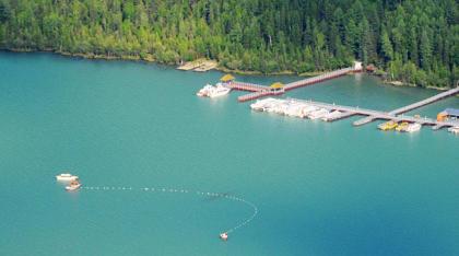 还有一个是喀纳斯自然保护区的游艇驾驶员仝保明,据他讲他在湖上的时候湖上经常大浪。而且是在无风的时候起浪。浪也是在一个地方,有一次他在湖上看到远方好像有两个船向自己开来,仅一点才发现不是船。而是大型的怪物。