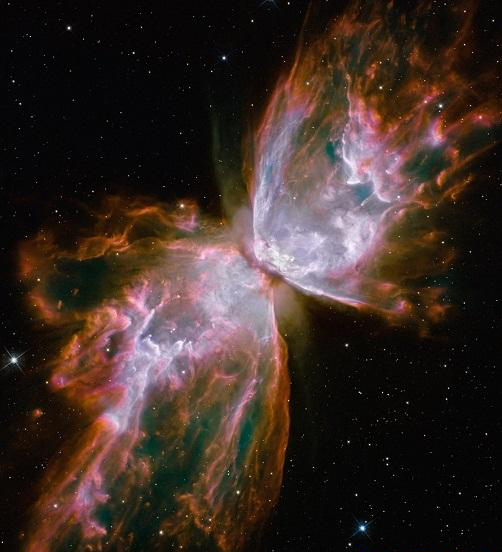 这个异常美丽的蝴蝶星云是由一颗变得极其炎热的濒亡恒星形成的。这张照片是哈勃太空望远镜在2009年拍摄到的,稠密的尘埃云看起来就像是一只蝴蝶的翅膀。