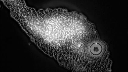 这个微生物体——一种被称为嗜热金属球菌(Metallosphaera sedula)的古生物(在图中的陨石尘埃粒子中间可以看到的一群小点点)——最初于1989年被发现,当时它生活在意大利维苏威火山周围的热酸性硫磺温泉里。这些所谓的化学合成菌通常靠咀食岩石中的铁和硫矿物质生存,然后留下重金属残余物。因此这些微生物在采矿作业中很有用,可视为一种环保的方法,能对带有有毒化学物质的金属进行过滤。