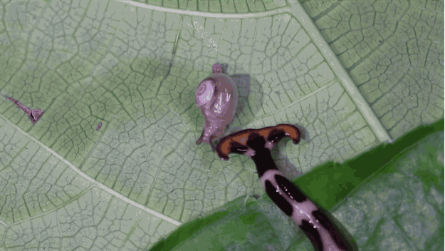 3. 可爱的小蜗牛被扁型虫猎杀: