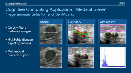 IBM 的另一个名为 Medical Sieve 的算法就能担任“识别助手”的工作,对于放射科及心脏科的医学影像图片,它能够在短时间内辅助分析,并给出可靠的诊断建议。这样一来,放射科医生只需要对一些疑难病症进行再次核查,工作压力就会大大降低。