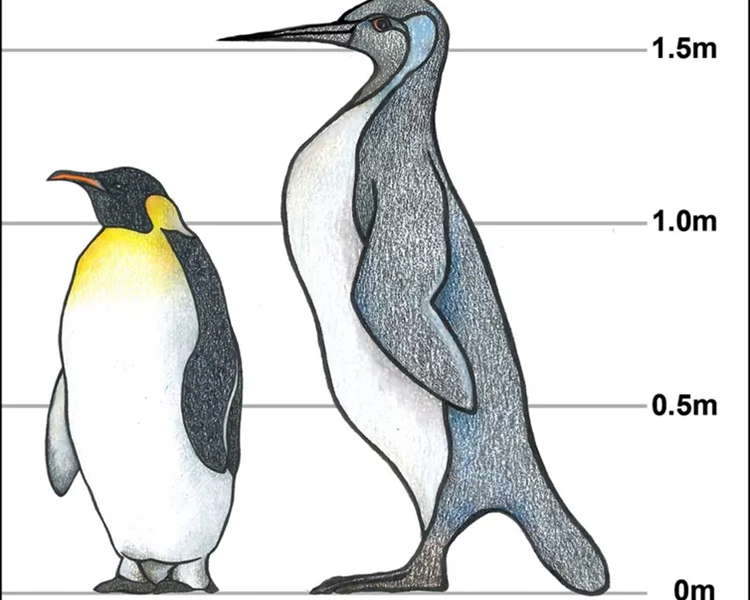新发表的研究称在新西兰南岛发现一种巨大企鹅的遗骸化石。这种企鹅生活在距今6600万~5600万年前,与现代人类的成年人差不多高。