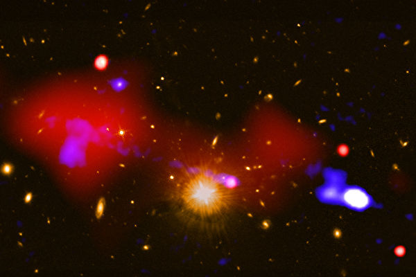 科学家先前侦测到来自一道高能粒子流所发出的无线电波。此高能粒子流绵延约100万光年之遥,可追溯至这个超级黑洞,而钱德拉X射线天文台侦测到该黑洞是个强而有力的X射线来源,其X射线由黑洞四周的热气所产生。