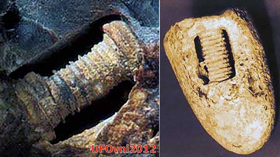 俄罗斯科学家在陨石坠落后的卡卢加 (Kaluga)地区进行分析的时候偶然发现到了一个类似于现代螺丝的神秘物体。科学家们都感到很困惑,不知道该如何解释它。它是来自外太空的物体吗?这代表着几百年前在地球上的古代文明吗?还是它只是另一种生物的化石?围绕着螺丝的化石约有2厘米长。它是被一个称为Kosmopoisk的小组在一次的科学探险中发现的,他们负责研究关于进行不明飞行物,密码学和超自然科学。