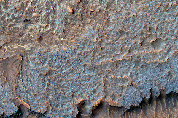 研究人员猜测这是很久以前火星上的火山活动或水资源留下的层层沉积物。