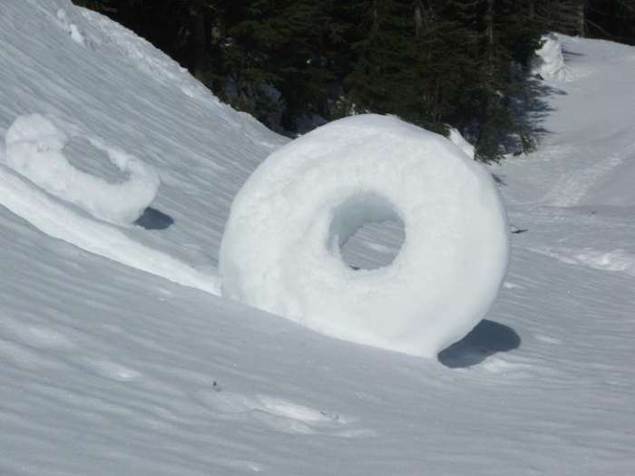 雪辊是由风形成的自然现象。大块的雪被吹在地上,沿途捡起材料。已知雪辊的直径可达2英尺。这些“球”通常是中空的,因为作为第一层的内层是薄的。