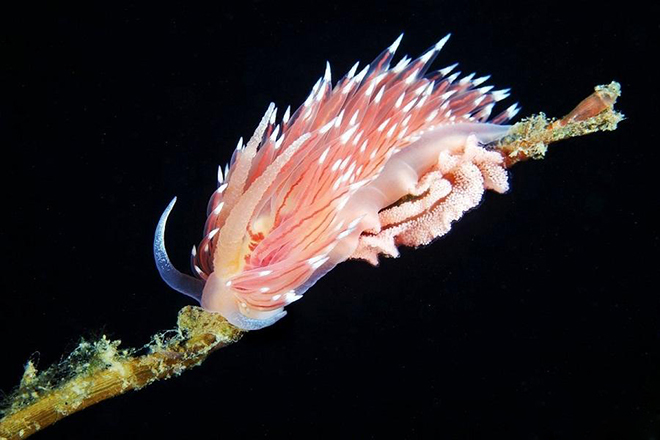 在一次潜水时,Semonov看到了这只Flabellina Nobilis,它也是一种海参。