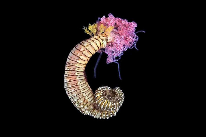 Semonov分享了自己在探险期间拍摄到的一些照片。这张照片中是主要存活在深海中的一种多毛纲动物Polychaete。
