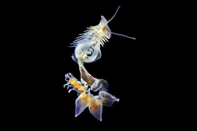 Semonov在自然环境中寻找这些生物体来观察它们的常态行为。其中许多生物体都从未被人们发现过。Anonyx nugax是一种没有外骨骼的甲壳纲动物,它们是主要的食腐动物。