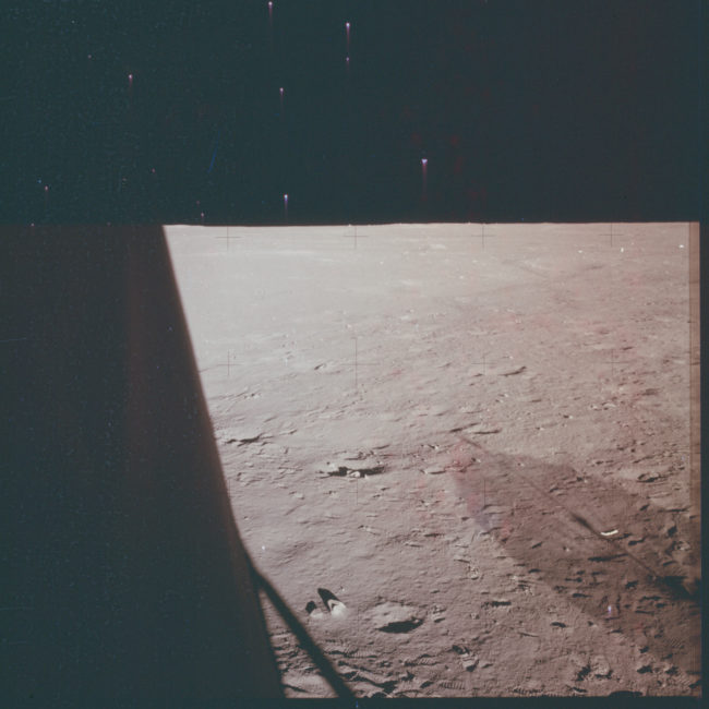 照片当中有一个看起来相当有趣的东西,中间那条神秘的线到底是什么东西啊?是影像处理的失误吗?还是有可能太空人真的拍到了UFO飞过月球的表面呢?