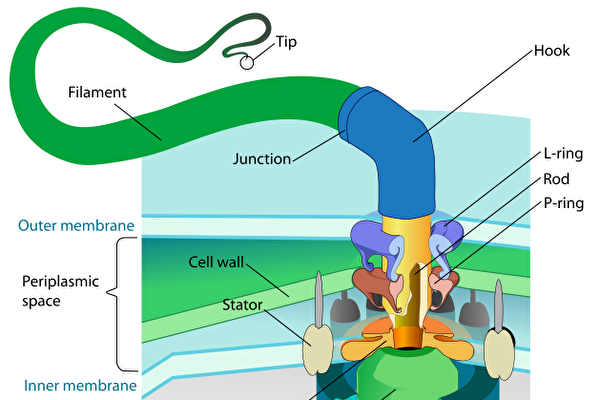 从研究人员绘出的鞭毛马达示意图上看,各零件齐全,巧妙,有规则。转子是有规则的圆形,其中装有尺寸正好的驱动轴,轴外面有尺寸正好的衬套,轴的末端是万向节,它将驱动轴连接上鞭毛,可以让鞭毛以不同方向旋转。