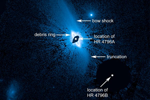 科学家使用哈勃太空望远镜,对237光年外的HR 4796双子星系统进行观测,注意到其中的年轻恒星HR 4796A。