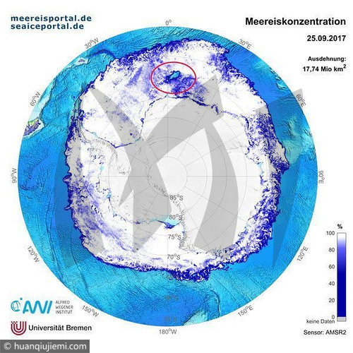 在南极冰上出现了一个巨大的洞,科学家们不知道为什么这洞会形成。 这洞与奥地利(或两个台湾)相当大小,毫无警告地出现,没有任何明显的理由。