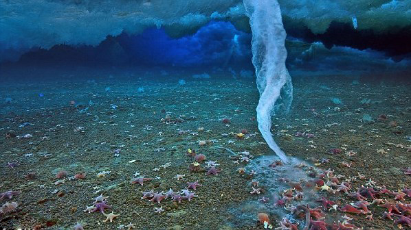 死亡冰柱是在1960年代时被发现的,从海面延伸下来的冰柱释放出低温、高浓度的盐水,随着盐水向下沉落,周遭的液态水逐渐凝结成绵状冰。最后,“死亡冰柱”延伸到海床,随即冷冻了海星和海胆。