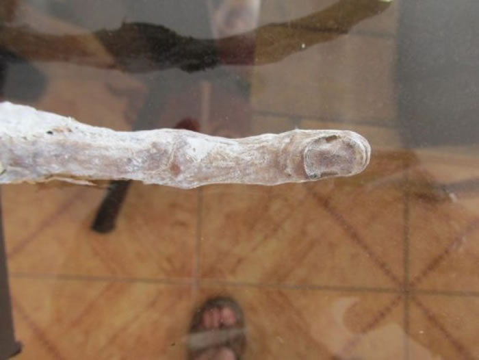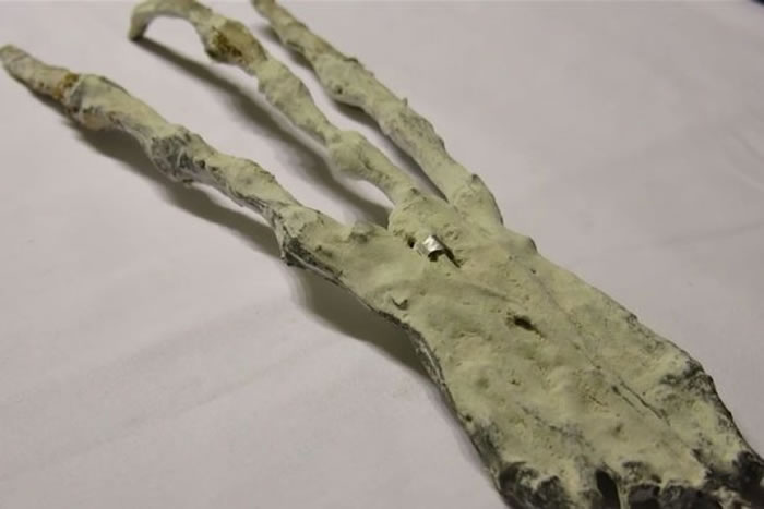 该班自称“超自然研究员”的人士,在库斯科古城掘出该只怪手化石,但拒绝公布确实位置,仅称是在一处地道内发现。该只怪手只有3只手指,但手指长达20厘米,宛如长爪。此外,他们又声称在同一位地点,找到一个细长的骷髅头。