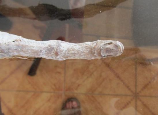 (Mysterious Universe)网站表示,他不像人形,而更像外星人,手只有三个长手指,没有拇指,还有一些其他奇怪的特点,使得确实身份难以辨识。它是否属于外星人的手指头?细长的手指是一个标志,它也有一个细长的头骨?