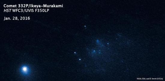 2010年,两名日本天文学爱好者Kaoru Ikeya和Shigeki Murakami发现了突然发光的彗星332P。当一颗彗星突然发光,只有一种可能:它正在被加热。而亮度的增加则是由于升华的冰块蒸汽和尘埃大面积爆发,反射太阳光造成的。今年一月,哈勃望远镜近距离的观测了这颗彗星,发现它不仅是在产生大量蒸汽的尘埃,同时正在慢性死亡,喷射出如同楼房一样大的块状物质。目前它处于火星外的一个轨道上。