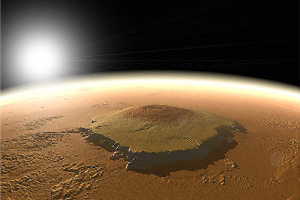 火星上的奥林帕斯(Olympus)盾状火山是太阳系内已知最大的火山,高达25公里,几乎是地球珠穆朗玛峰的三倍高,占地面积相当于美国亚利桑那州那么大。