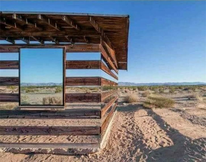 18. 在沙漠的棚子安装水平镜子时的视觉效果。