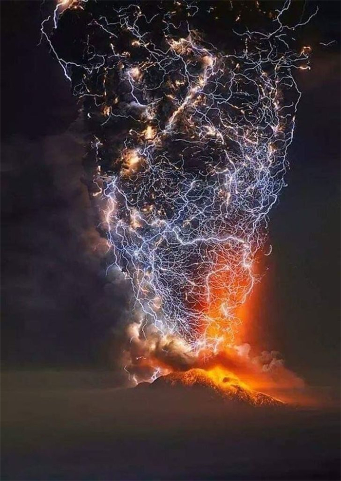 19. 火山喷发时产生的闪电。