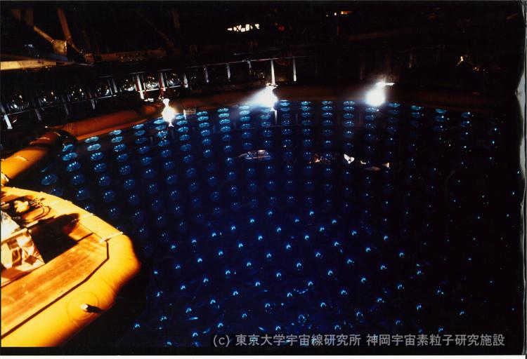 也就是说,科学家准备一个超大的水缸来与微中子产生反应,并且用超过一万个光电倍增管,来捕捉微小的契忍可夫辐射讯号。