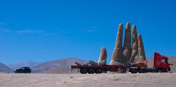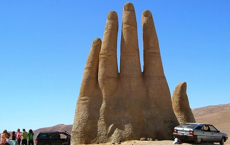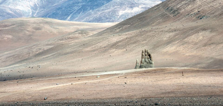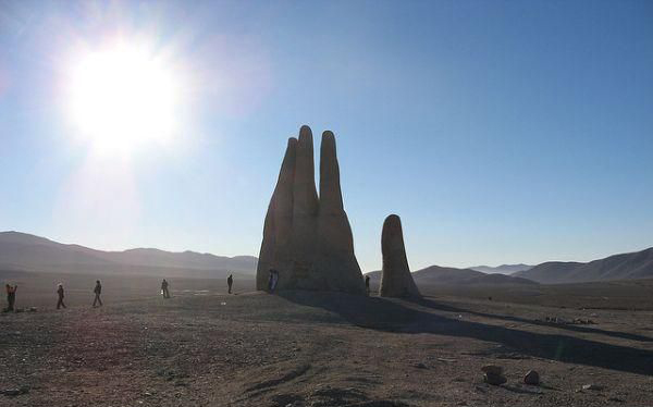 阿塔卡马沙漠不受任何人类活动干扰,它单调的景观似乎更像外星场景,而不是沙漠。安托法加斯塔区(Antofagasta)的城镇南方75公里处的小碎石路,在泛美公路(Pan-American Highway)上标示着1309,它通往一个11公尺高的大型水泥手,它从沙中窜出。这是智利雕刻家Mario Irarrázabal的作品,它叫做La Mano del Desierto,又叫“沙漠之手”。