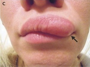 再过了10天,肿包又神奇地自己移动了,这次她的嘴唇明显地肿了起来,加上难以忍受的痛感、甚至嘴唇发热,她终于决定去看看医生。