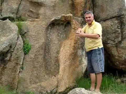1912年,一名叫做Stoffel Coetzee的猎人在狩猎时,因为踩进一个神秘、巨大的脚印而被绊倒,那已经是一百年前了。这个脚印嵌在一块“斑晶”(phenocrystic)花岗岩,或说粗糙的斑状花岗岩上,是经过了不同阶段的冷凝,才形成如今的样貌。