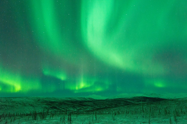 阿拉斯加因位置特殊,有永夜及永昼的现象,极光发生的机率较长在冬季。