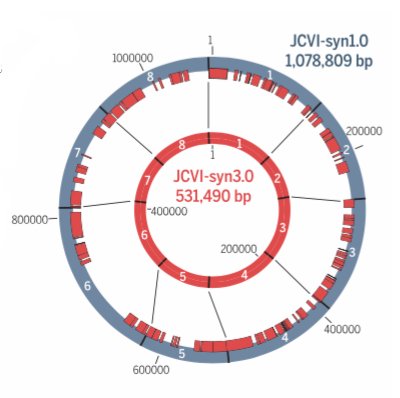 JCVI-syn3.0(简写syn3.0)的基因由合成基因公司与J. Craig Venter研究所的研究人员们携手设计。它也被称作“极简”基因组,因为它只有473个基因,这是它维持大多数生命基本功能(包括繁殖)所需的最少基因。这一非凡成就被发表在科学期刊上。