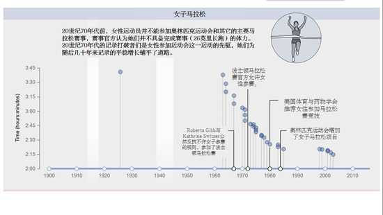 1896年,运动员Charilaos Vasilakos参加了世界上第一场现代马拉松比赛——这是首届奥林匹克运动会的预选赛,并以3小时18分钟的成绩夺冠。而在100多年后的今天,这个成绩甚至不足以获得参加美国波士顿马拉松赛(世界马拉松大满贯赛事之一)的资格。从现代奥林匹克运动会诞生之初,由于国际对抗、社会变革、科技进步、规则改变等种种不同的原因,每一项体育运动的世界纪录都一直被不断刷新。