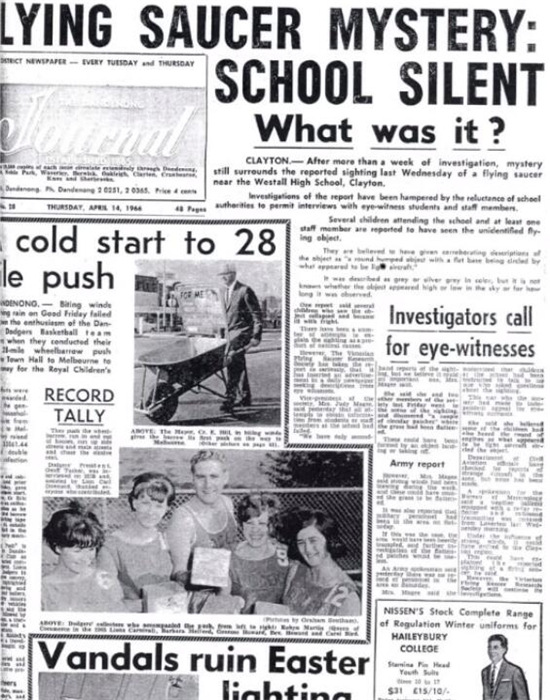 1966年4月6日,澳洲墨尔本的一座校园中,300多名师生目睹了超过一架不明飞行物(UFO)安静地飞越上空,再降落于邻近的空地。韦斯托尔(Westall)高中案是澳洲最大的UFO目击事件,诡异的是,当年几乎没有关于此事的报道。据news.com.au报道,在所有这些年来的证据与臆测中,有一个录音档被忽视了。