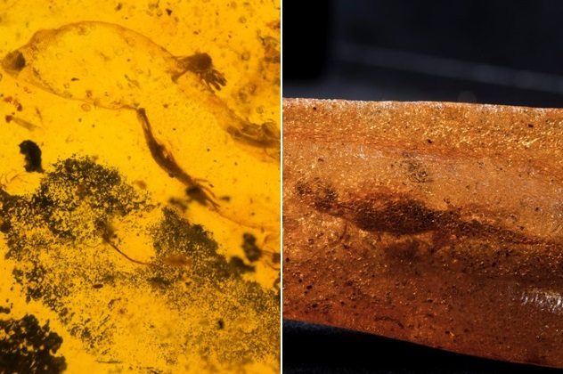 科学家最近发现两种古蜥蜴化石,都是包覆在琥珀里,但由于他们的起源不明,也无从得知身分,又或是已经知道身分,但起源不明,让这些古蜥蜴变得更加神秘。第一个化石只看得出外型,有完整的皮肤,但时间久远,体内器官已经消失了,让科学家很难继续调查,但他们绝对不是壁虎或石龙子 (一种小蜥蜴) 。第二个化石已经在加拿大美术馆展出很多年了,但没有文献纪录,但可以从皮肤、骨骼结构和脚趾看的出来应该是蜥蜴。