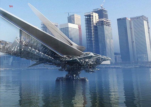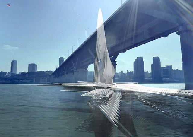 蒙古的鄂尔多斯市(Ordos)委托建筑师Margot Krasojević设计一座可摆放在河上的桥梁。结果设计出一个未来的帆船桥(sail bridge)概念,展示出筑学的未来会是变形的结构。