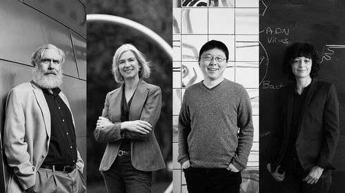 CRISPR技术先驱(从左到右):George Church、Jennifer Doudna、张锋和 Emmanuelle Charpentier。图片来源:Shotview Artists