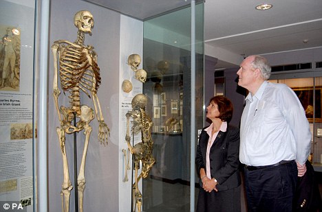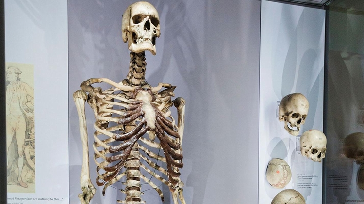 一个7.7英尺的骸骨,叫Charles Byrne,被一位收集家保存着,研究员从他的牙齿采集DNA。【图片来源: ALAMY】