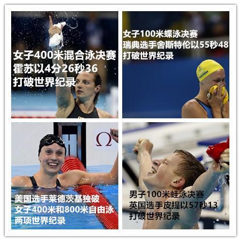本届奥运会被打破最多的就是游泳纪录,共有6项游泳纪录被打破。不可否认,本届奥运会游泳高手云集,来自美国的莱德茨基、瑞典的萨拉·舍斯特伦,以及英国的皮缇·亚当等,都纷纷碾压过去的世界纪录。
