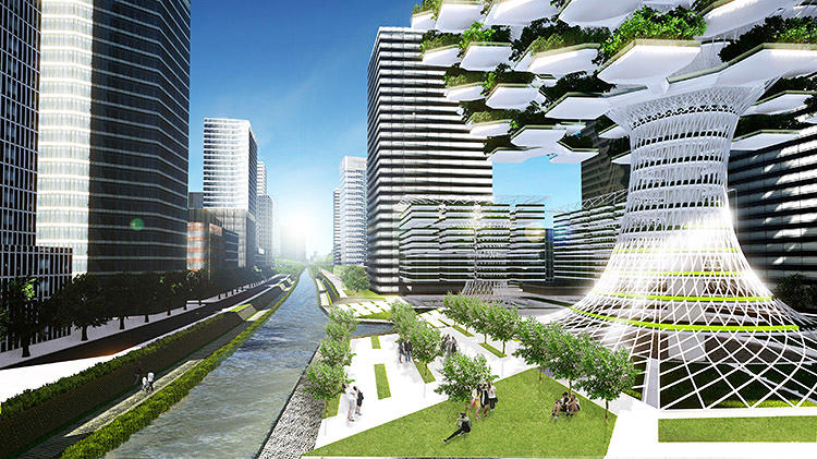城市天空农场(Urban Skyfarm )除了种植24英亩等量的水果与蔬菜,也收集雨水将它流往已建造的湿地过滤后,再送回附近的小溪,这真的是迄今为止我们看见的最新设计。