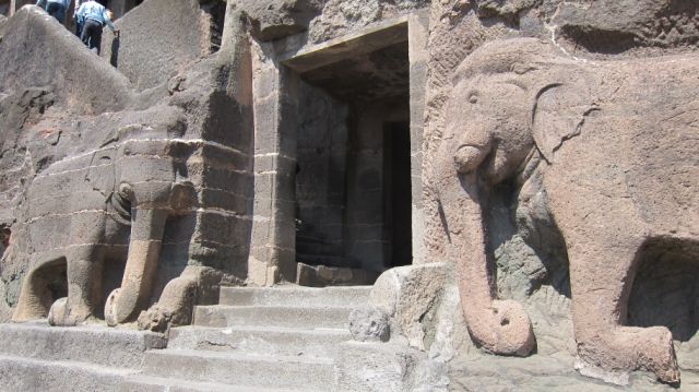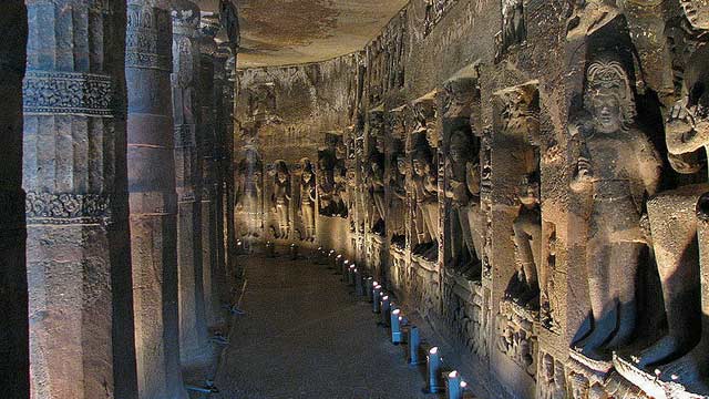 在1819年隶属英国陆军马德拉斯军团的军官约翰.史密斯(John Smith)在孟买郊外丛林中追捕一只老虎时有了令人惊叹的发现,当诱捕老虎时,他碰巧发现在灌木丛中有一个隐密入口的神秘洞穴,本来以为只有一个,谁知道却有29个在遥远的过去雕刻在岩床的巨大洞穴,这些神秘的建筑装饰的极为美丽。