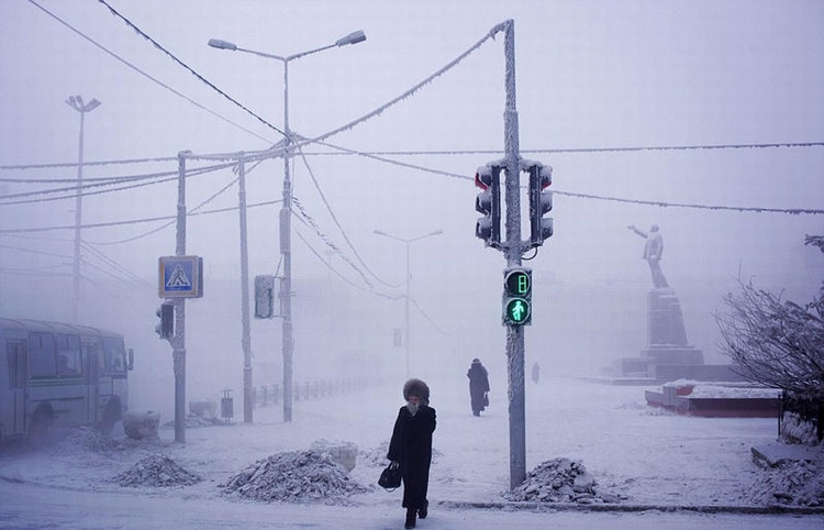 在俄罗斯西伯利亚的冻土地带,有一个名为奥伊米亚康的小镇,这里常年平均气温在零下50℃左右,有记录最低温为零下67.7℃,常住人口只有500人。来自新西兰的摄影师阿莫斯•查波尔(Amos Chapple)决定到这个最冷村庄的体验一下人们的日常生活。