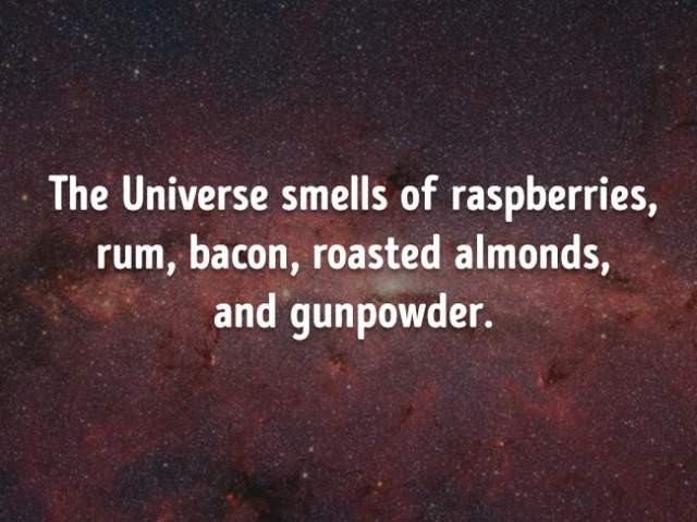 5. 宇宙闻起来的味道就像覆盆子、兰姆酒、培根、烤杏仁和火药的味道。(好复杂啊?我还是没个头绪)