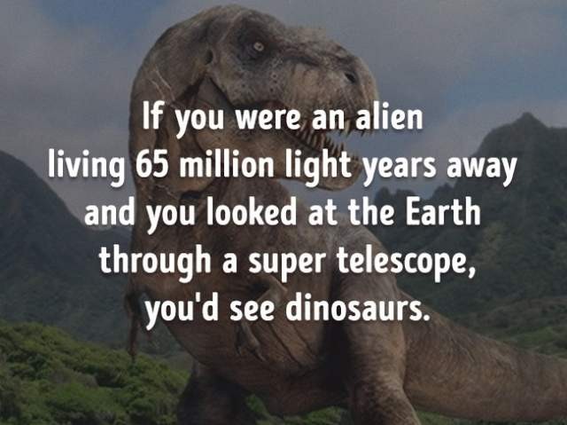 1. 如果你是个住在6500万光年以外的外星人,而你正在透过超级望远镜观察地球的话,你就会看到恐龙。