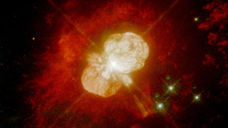 系统中的一颗恒星正在接近生命的尽头,意味着它可能很快地会变成一颗真的超新星。由于Eta Carinae距离地球大约7千光年,它可能已经发生,只是我们还没看见。